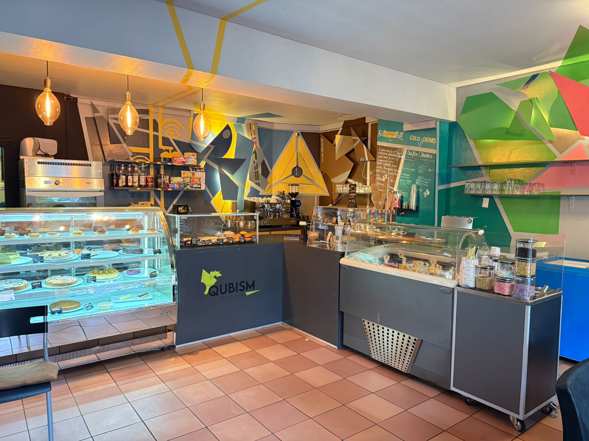 Ausstattung: Moderne Geräte, ansprechende Theke, Sitzplätze im Innen- und Außenbereich