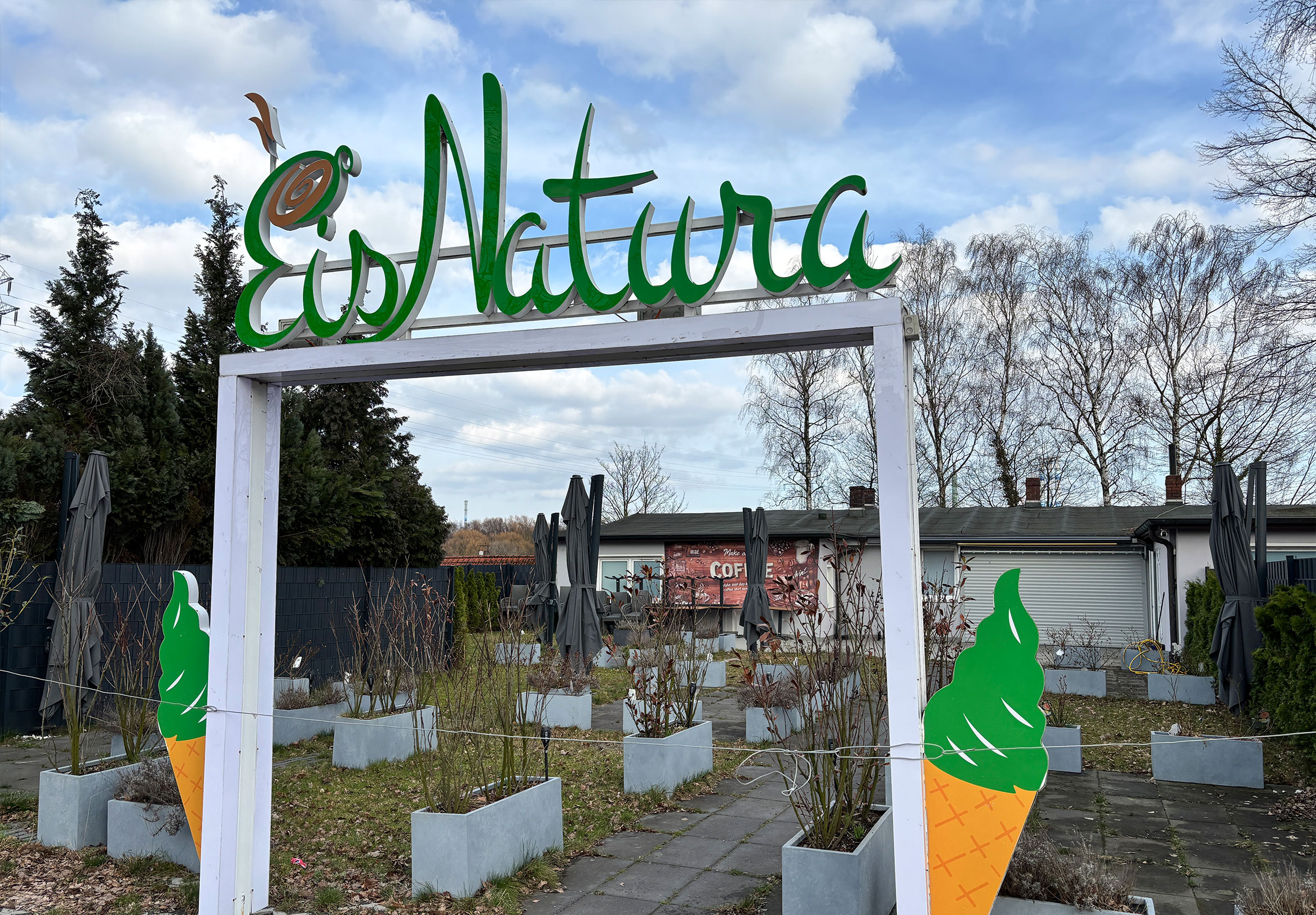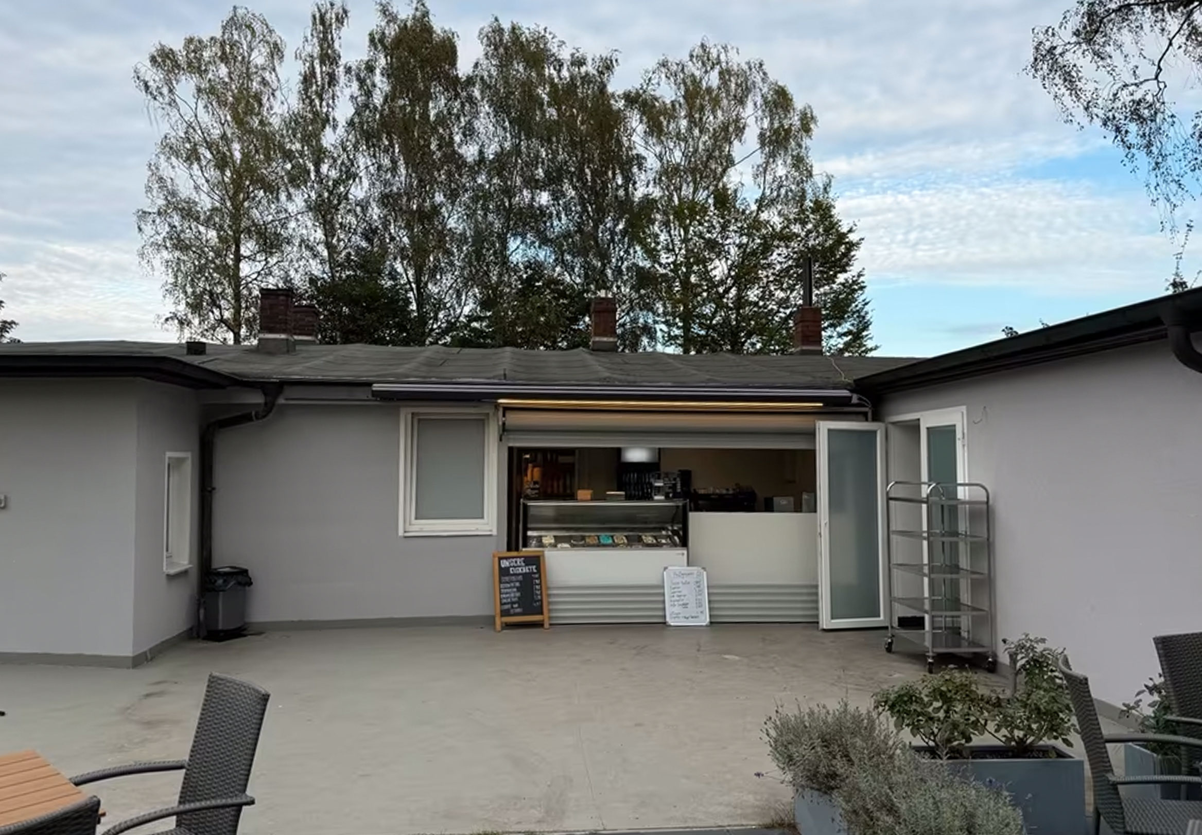Die Gesamtfläche beträgt ca. 400 m², davon ca. 320 m² Außen- bzw. Gastfläche im Vorgartenbereich. Der Innenbereich ist vollständig ausgestattet und ermöglicht sowohl Verkauf als auch Produktion von Eis vor Ort.
