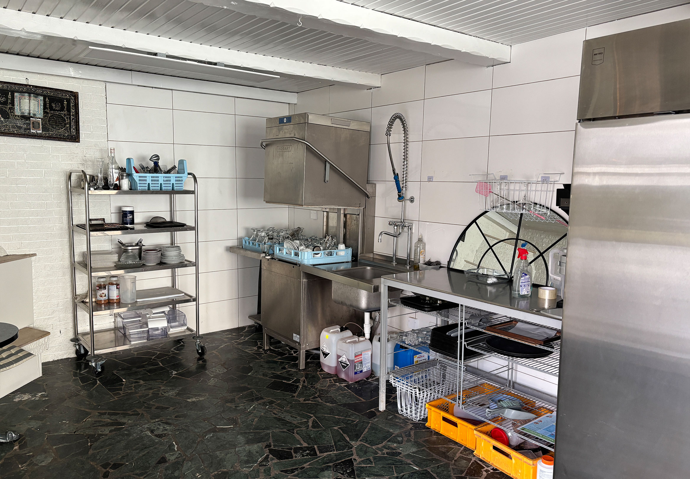 Das Objekt verfügt über Anschlüsse für Starkstrom und Wasser und ist für den Betrieb eines Eiscafés mit kalter Küche genehmigt. Gäste- und Personal-WC sind vorhanden.